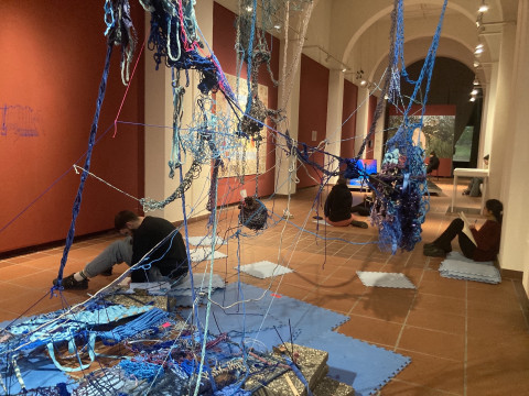 KNVNT ist ein Künstler*innen Kollektiv, die performative, immersive und auch heilsame Events für und mit FLINTA Menschen organisieren. Die Kunstvermittlung der Kommunalen Galerien unterstützt ihre Arbeit und kollaboriert bereits zum zweiten Mal mit dem Kollektiv um Orsolya Balog (ORSHI).